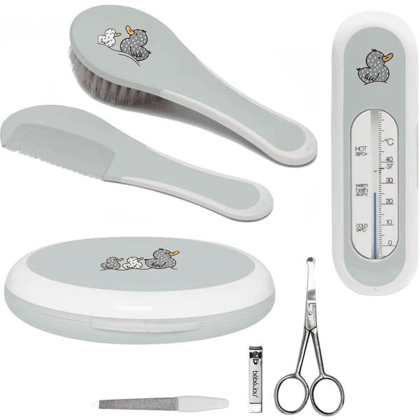 Das bébé-jou Geschenkset enthält einen Kamm und eine Bürste, ein Maniküreset