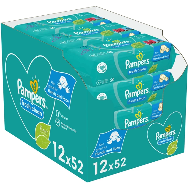 - Pampers Fresh Clean Feuchttücher 12 Packungen (12 x 52 Stück), 624 Feuchttücher, milder Duft, auch für Hände und Gesicht geeignet