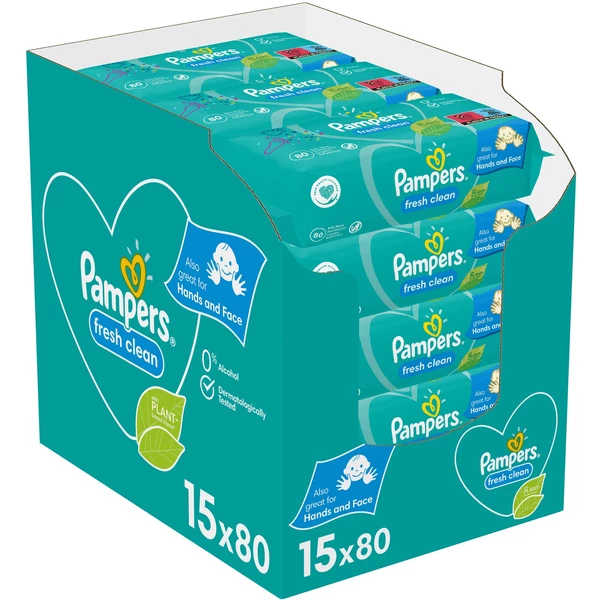 - Pampers Fresh Clean Feuchttücher 15 Packungen (15 x 80 Stück),1200 Feuchttücher, milder Duft, auch für Hände und Gesicht geeignet